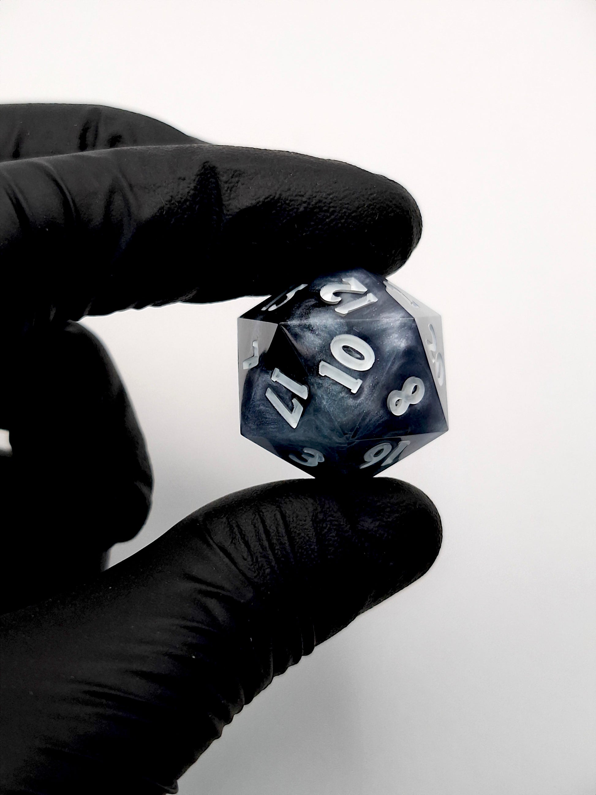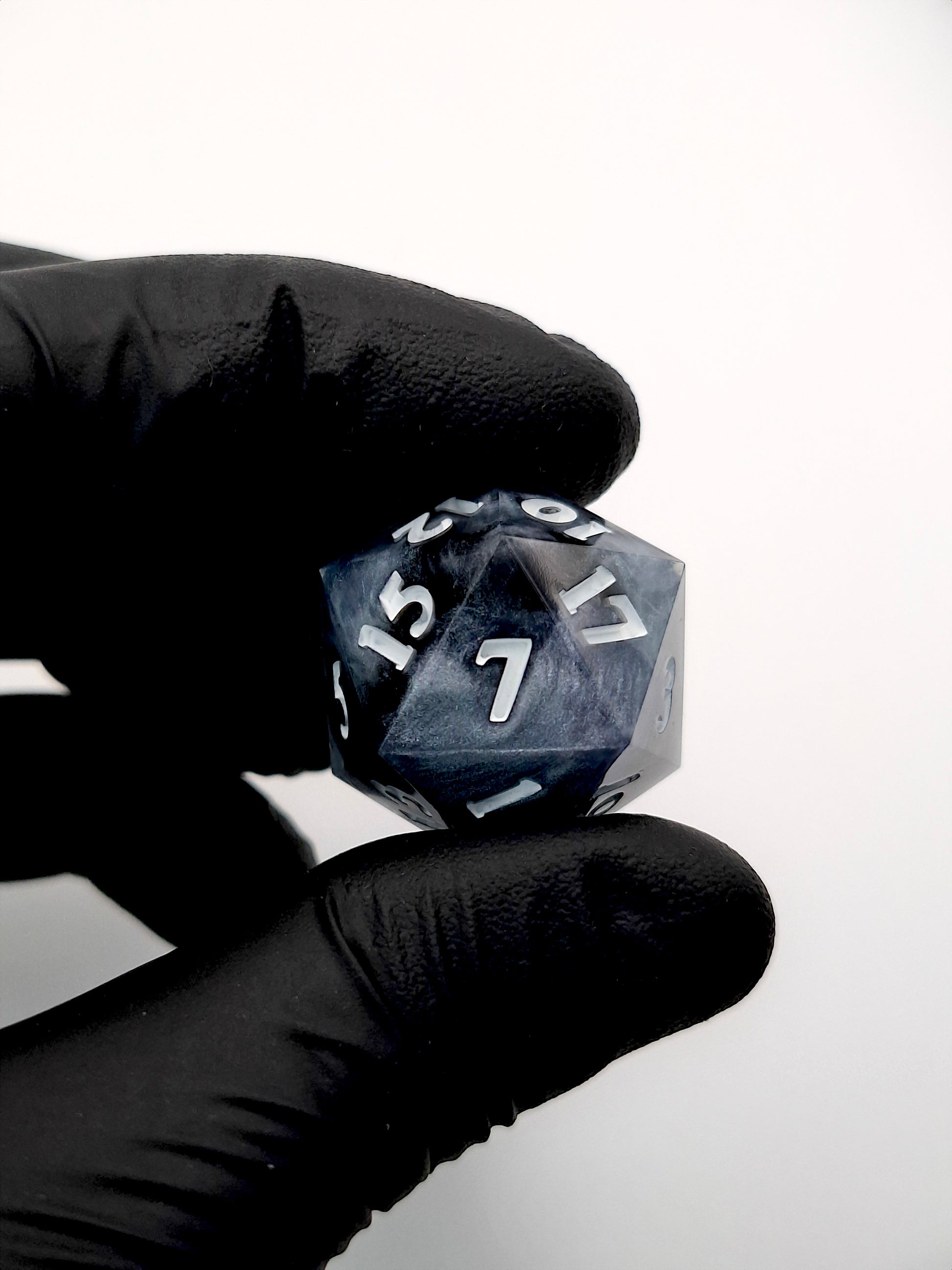 These dice are handmade, and although we work hard to minimize flaws, the sets might occasionally have small imperfections such as micro scratches, small mold marks around the 1 face, tiny bubbles on the surface, patched up surface bubbles, inclusions touching the surface or inking inconsistencies due to the way the paint dried. These have no effect on the balance or the playability of the dice, they’re purely cosmetic. Also note that these pictures were taken in a lightbox. We aim to depict every set as close to their actual color as possible, but the color might also vary in appearance on different screens. Please keep this in mind when you purchase.