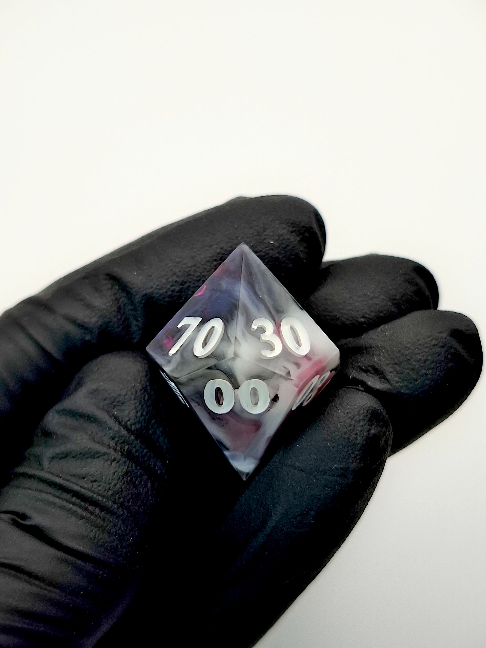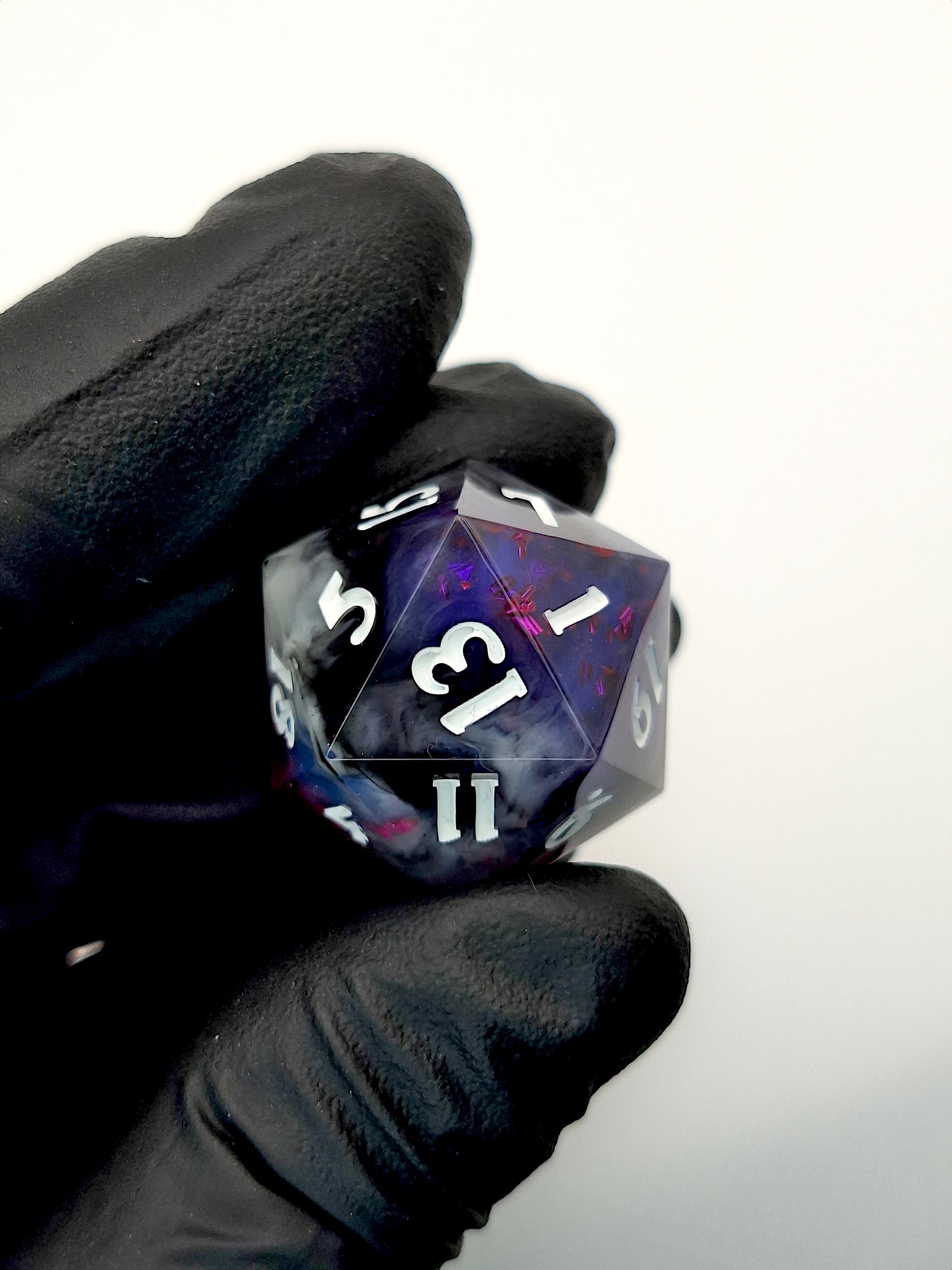 These dice are handmade, and although we work hard to minimize flaws, the sets might occasionally have small imperfections such as micro scratches, small mold marks around the 1 face, tiny bubbles on the surface, patched up surface bubbles, inclusions touching the surface or inking inconsistencies due to the way the paint dried. These have no effect on the balance or the playability of the dice, they’re purely cosmetic. Also note that these pictures were taken in a lightbox. We aim to depict every set as close to their actual color as possible, but the color might also vary in appearance on different screens. Please keep this in mind when you purchase.