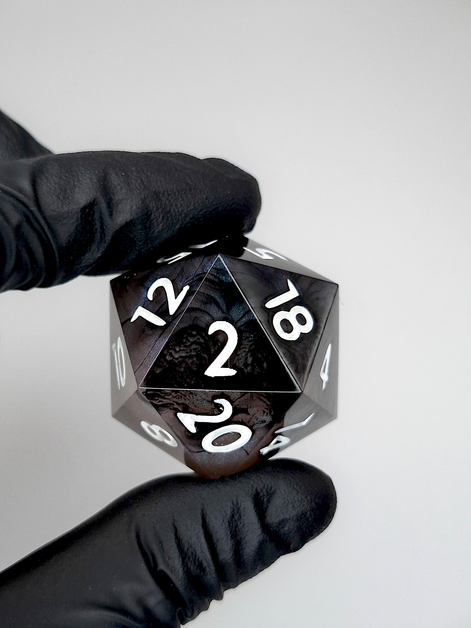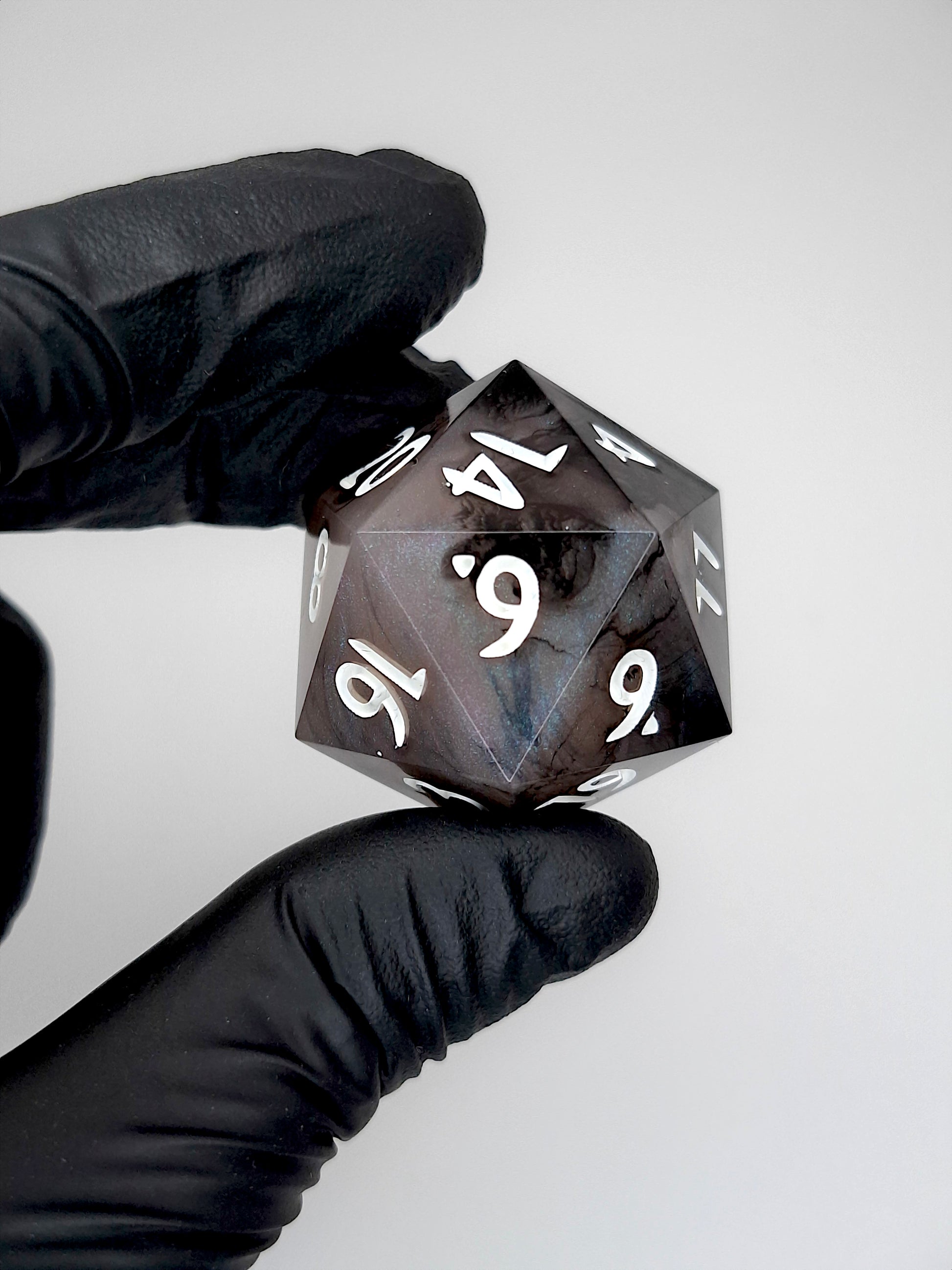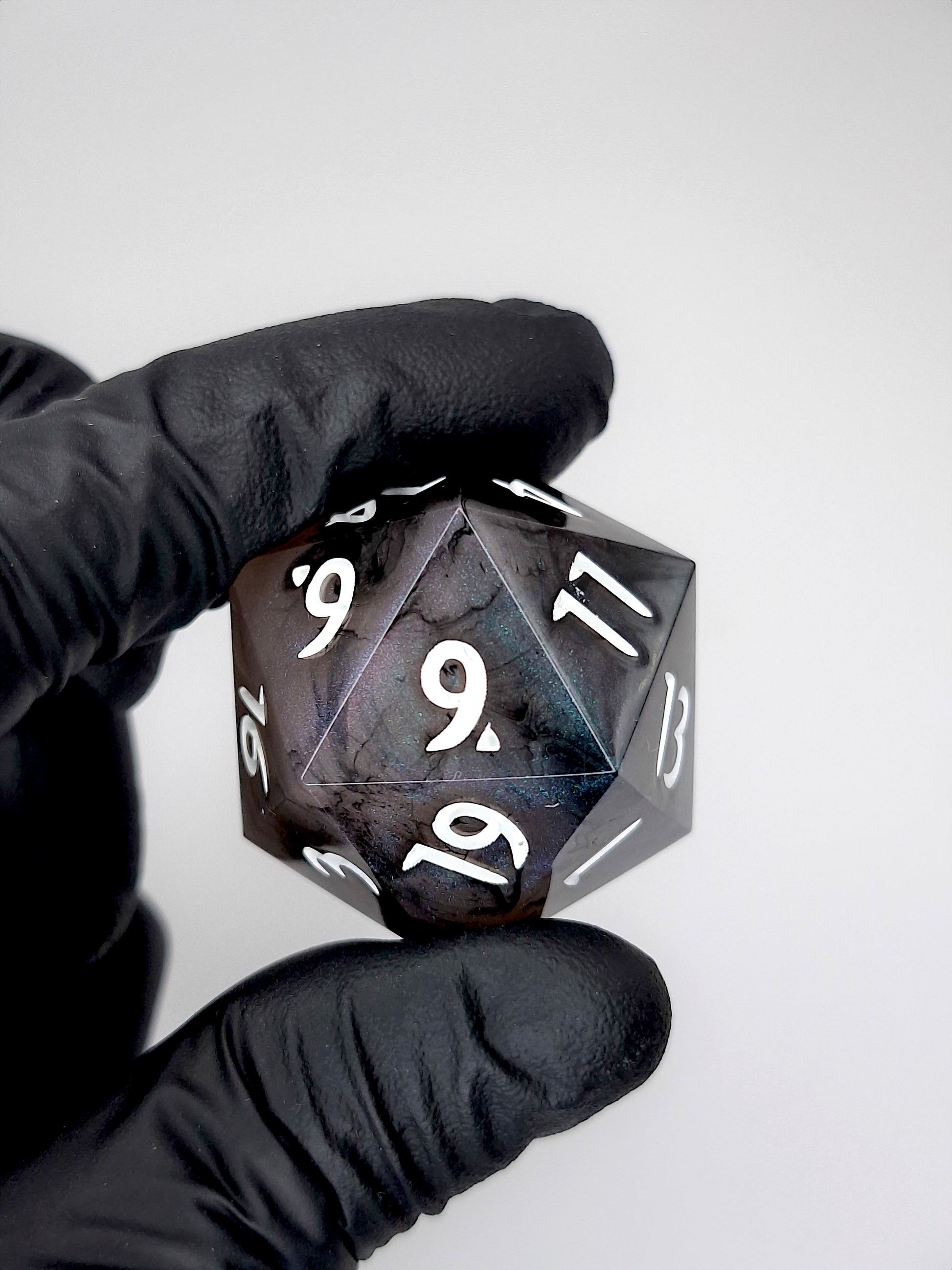 These dice are handmade, and although we work hard to minimize flaws, the sets might occasionally have small imperfections such as micro scratches, small mold marks around the 1 face, tiny bubbles on the surface, patched up surface bubbles, inclusions touching the surface or inking inconsistencies due to the way the paint dried. These have no effect on the balance or the playability of the dice, they’re purely cosmetic. Also note that these pictures were taken in a lightbox. We aim to depict every set as close to their actual color as possible, but the color might also vary in appearance on different screens. Please keep this in mind when you purchase.