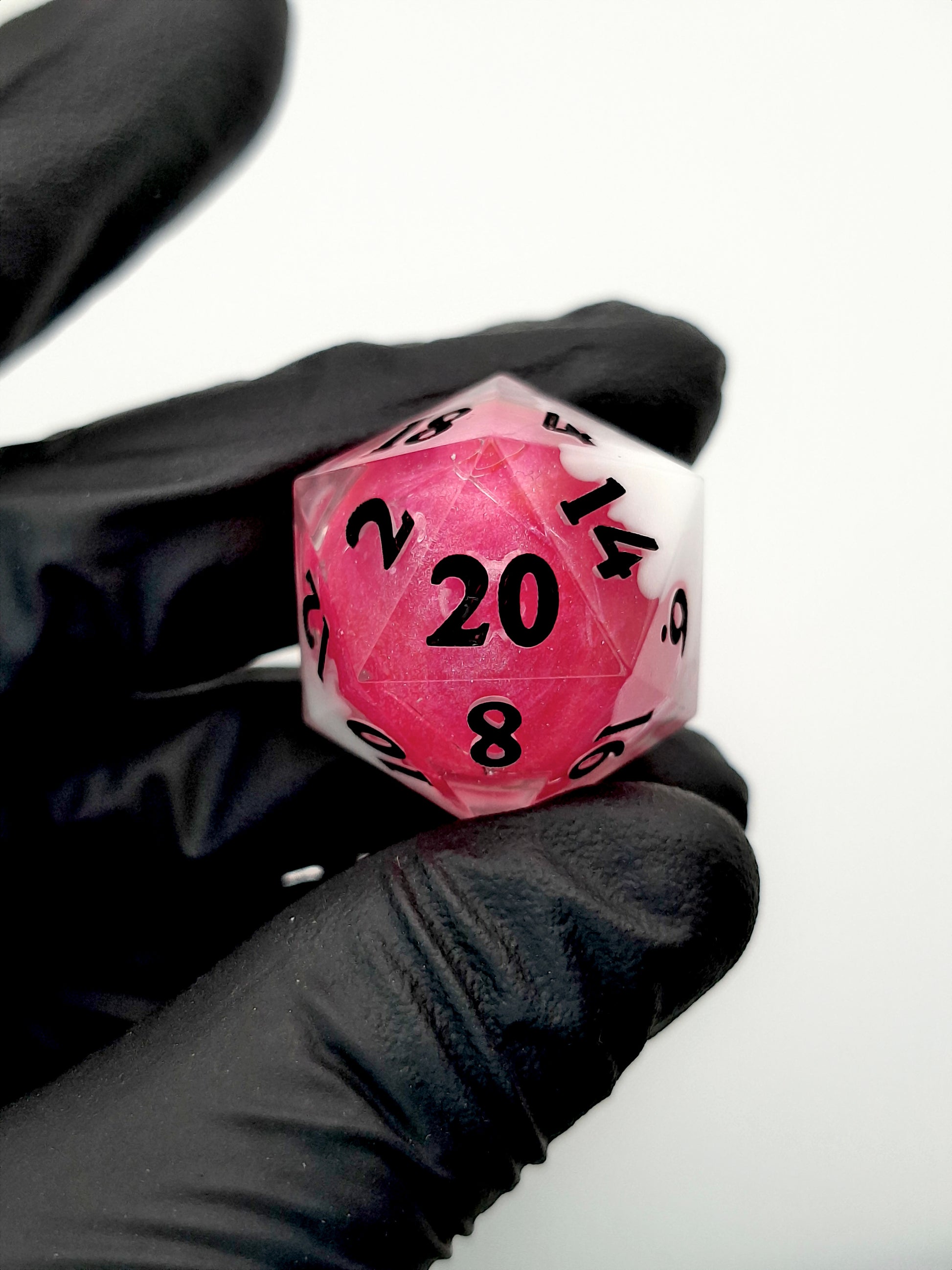 These dice are handmade, and although we work hard to minimize flaws, the sets might occasionally have small imperfections such as micro scratches, small mold marks around the 1 face, tiny bubbles on the surface, patched up surface bubbles, inclusions touching the surface or inking inconsistencies due to the way the paint dried. These have no effect on the balance or the playability of the dice, they’re purely cosmetic. Also note that these pictures were taken in a lightbox. We aim to depict every set as close to their actual color as possible, but the color might also vary in appearance on different screens. Please keep this in mind when you purchase.